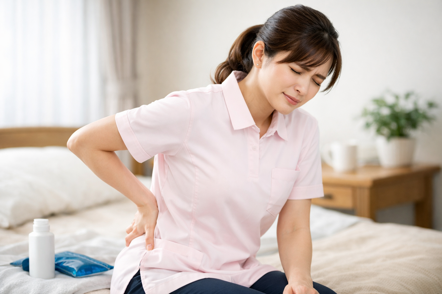 ただ、休みの日も痛みが残る、朝からすでに腰が重い、湿布やコルセットが手放せない状態が続くなら、負担がかなり大きくなっているかもしれません。